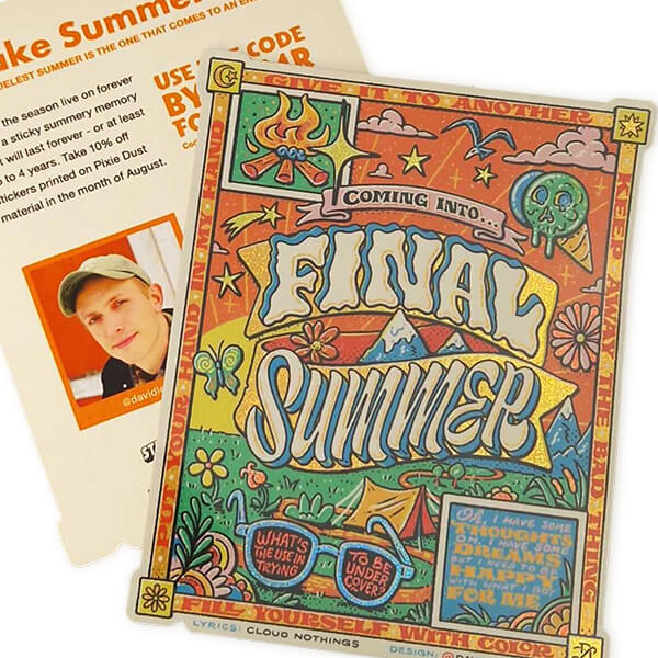 David: I don’t have just one. For me the variety is what makes it fun, so I like to try everything. Holographic, Prismatic and Glitter are usually my go-to effects, though. They’re so shiny! I also want to try out those heavy-duty vinyl stickers some time. And I’m really excited to see how the new Pixie Dust finish turns out on this card you’re currently holding in your hand. (Would love to hear your thoughts via DM: @DavidLeutert)