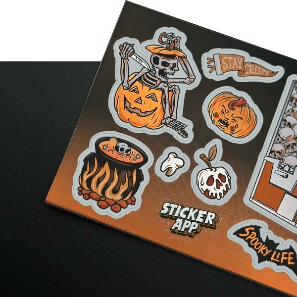 My style: bold lines, minimal colors, and light-shadow balance. I switched from traditional to digital with Procreate and Illustrator. Inspired by tattoos, pop culture, and punk rock; artists like Jimbo Phillips and Dan Mumford influence me. My creative journey began in university, leading to full-time illustration. I choose StickerApp for its ease and quality, preferring holographic and glow-in-the-dark materials.