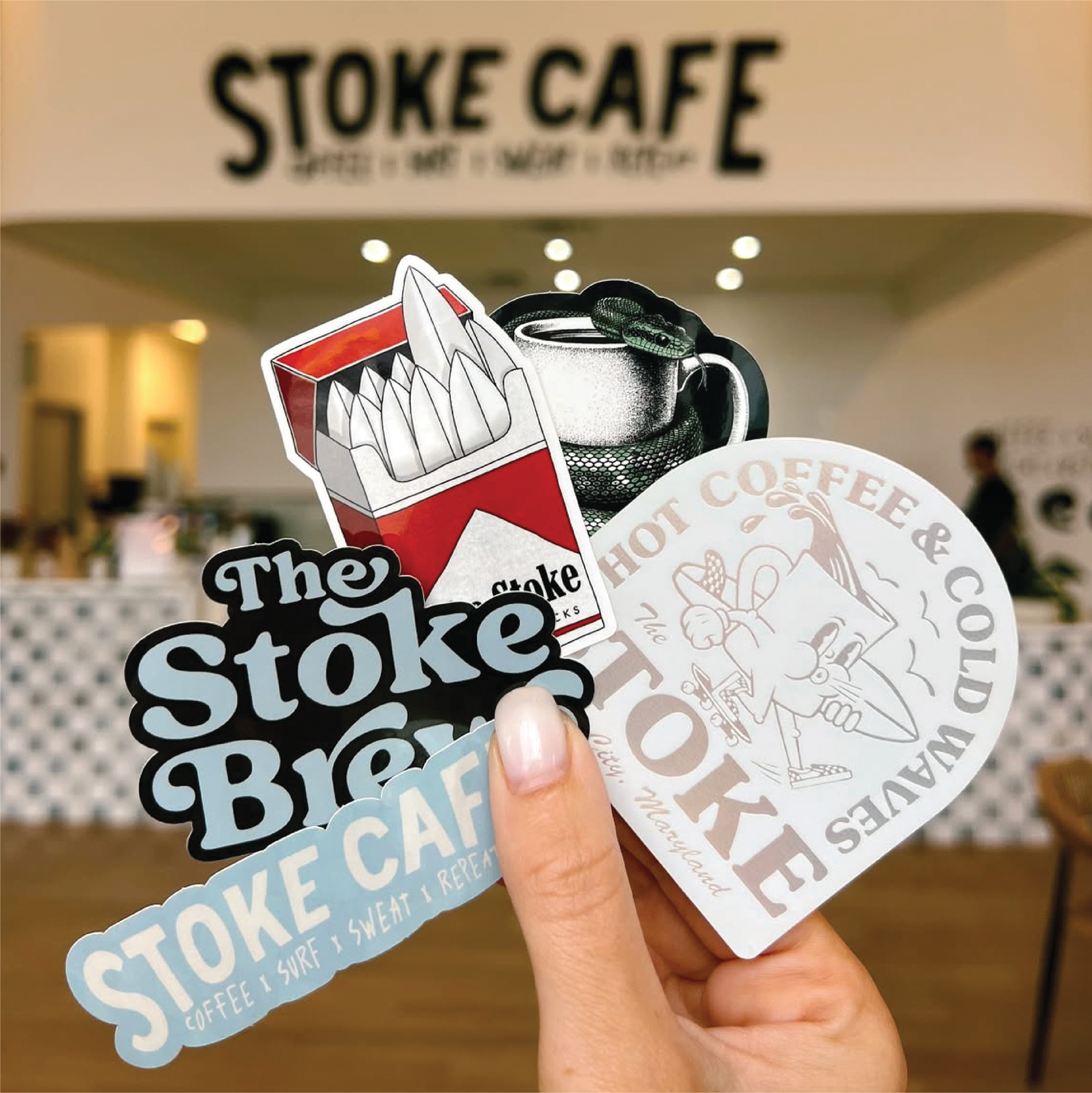 "Working with Paige to create the perfect stickers for our new café + surf shop + gym has been so fun! These stickers are not only vibrant and eye-catching, but they also serve as an awesome way to connect with our community.
