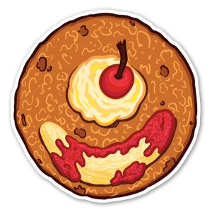 Sweet and delicious breakfast with ice cream, banana and cherry jam.